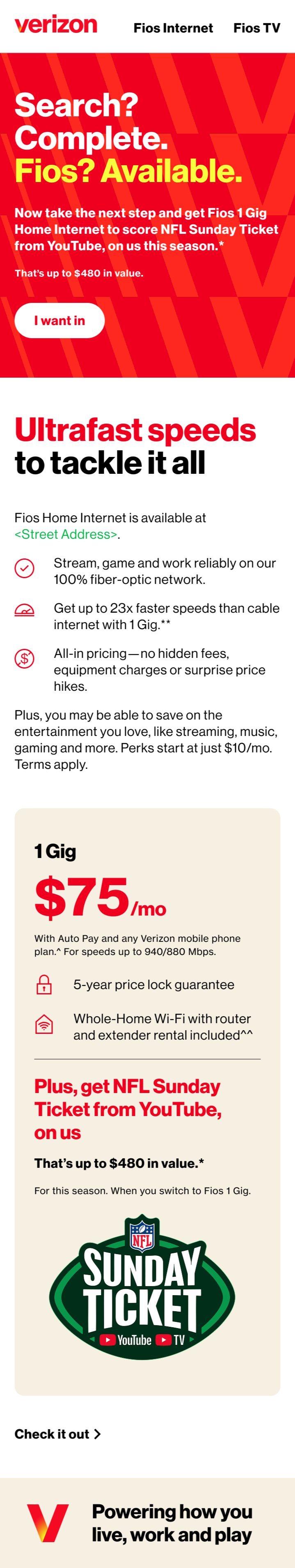 Working with a variety of talented art directors, we concept and create dozens of emails, direct mail, flyers, pamphlets, and more for potential and existing Verizon customers.